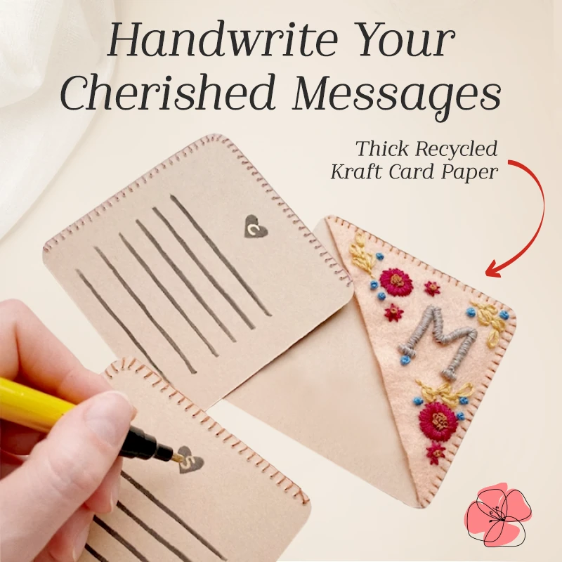 Material: Felt fabric, embroidery thread, recycled card stock